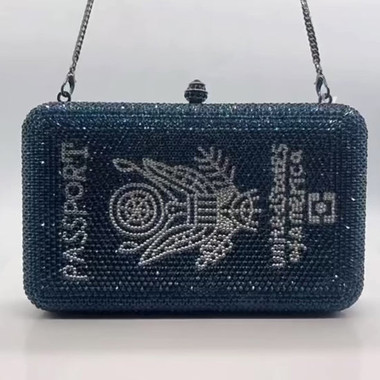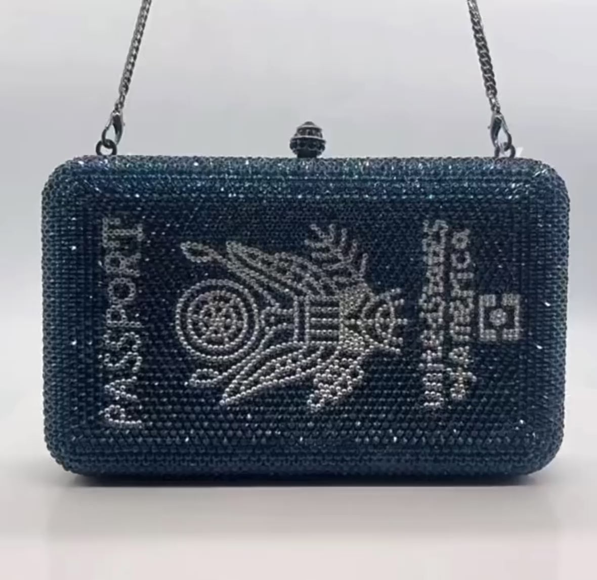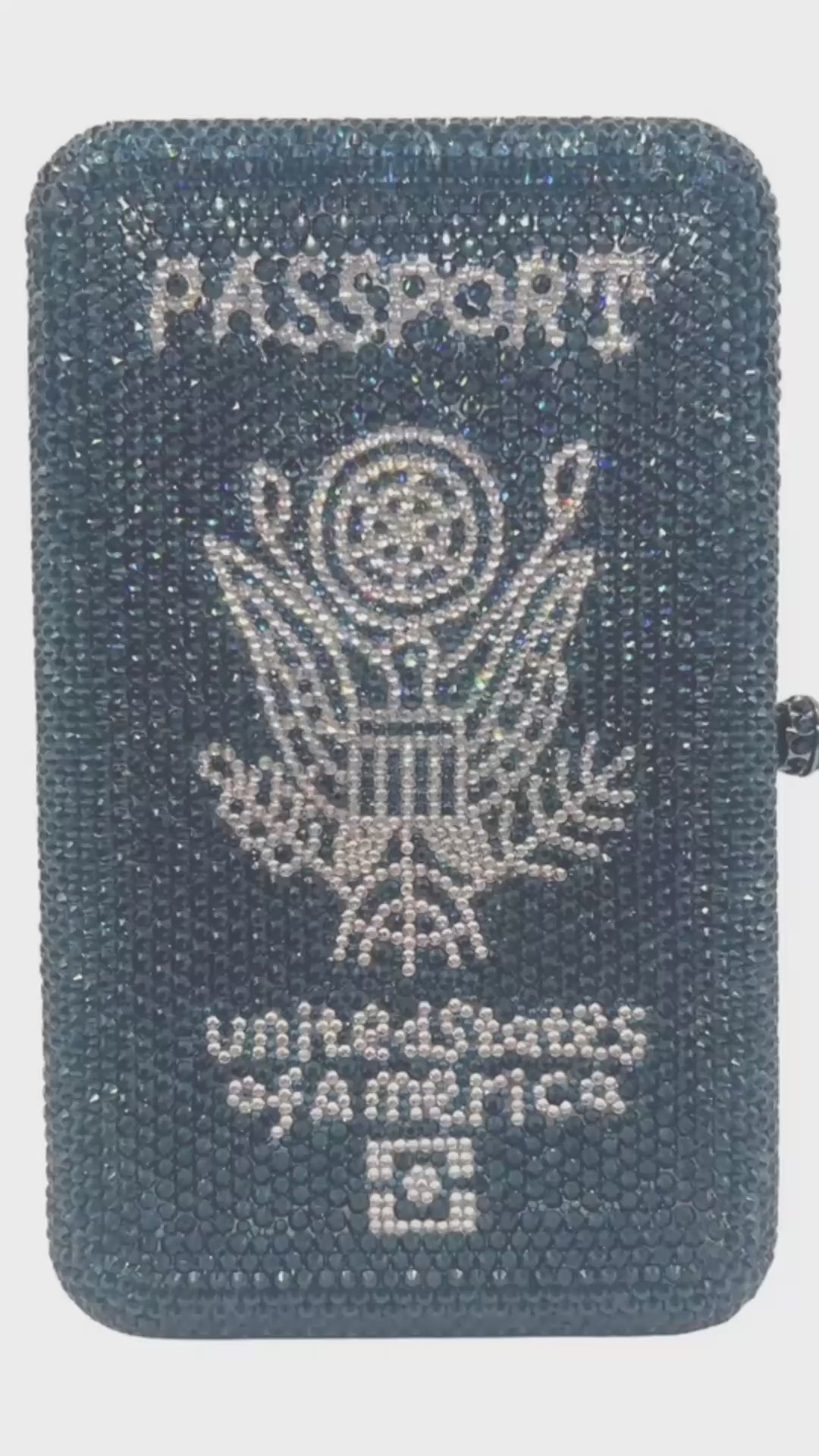 "Embark on your next journey with our Let's Take a Trip Passport Clutch. This bedazzled, handcrafted clutch is the perfect accessory for your United States passport. Sophisticated and exclusive, it's a must-have for any luxury traveler. ✈️🌎👝"